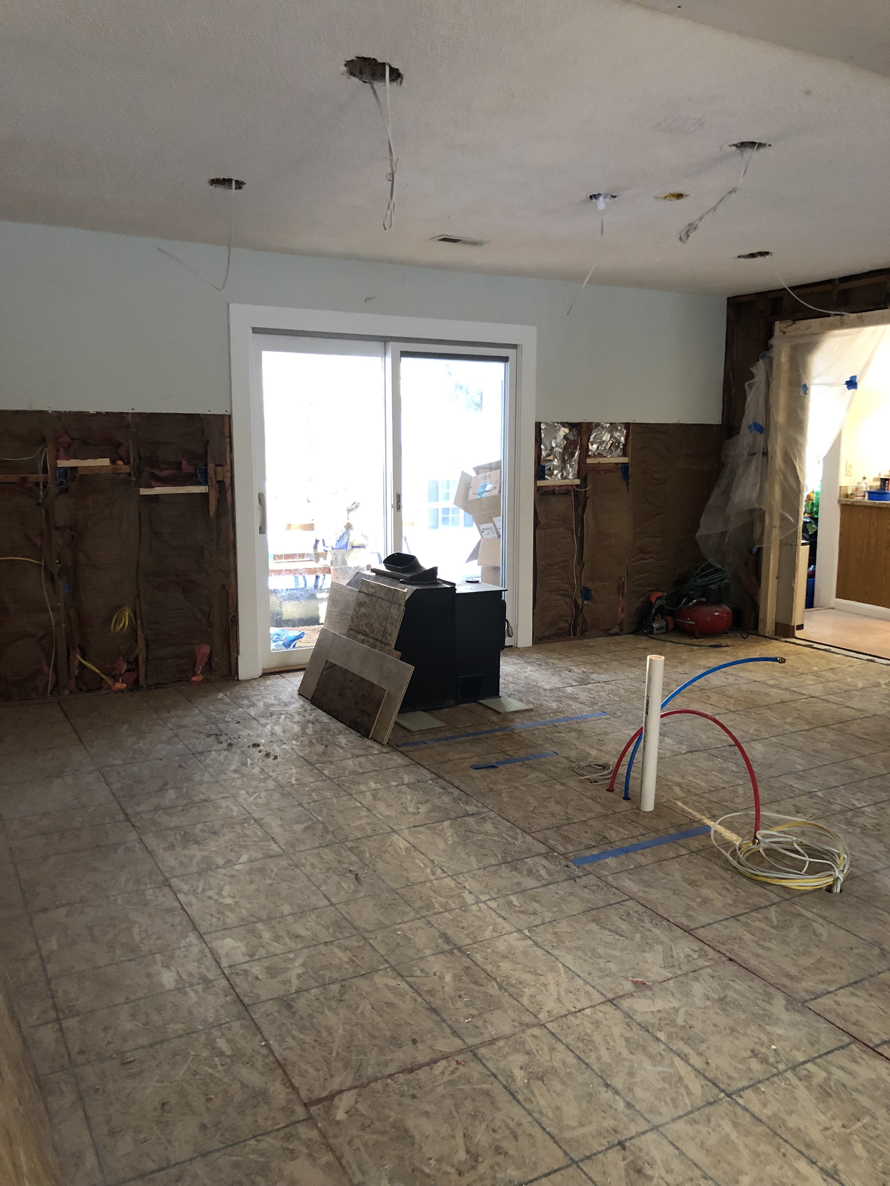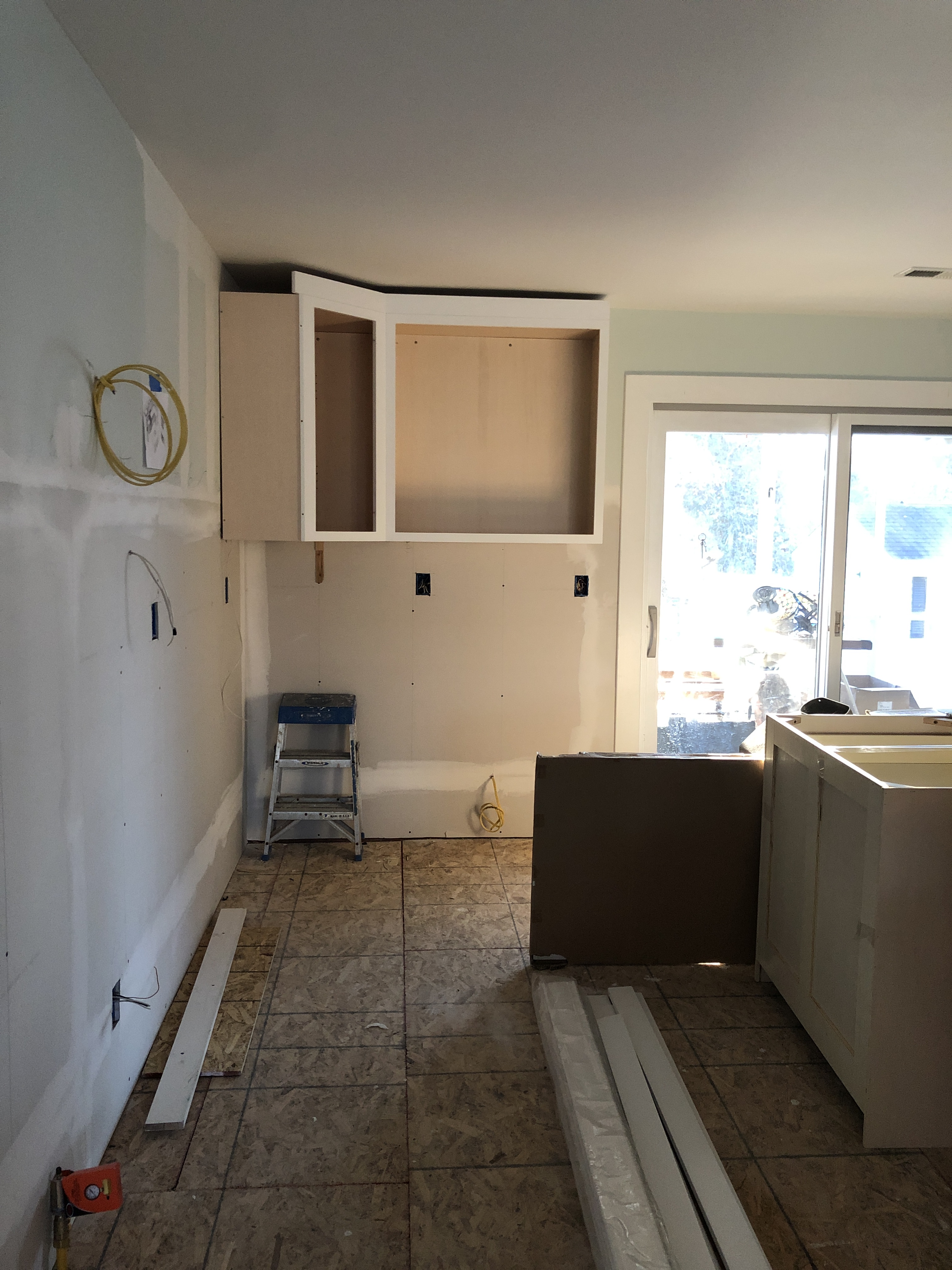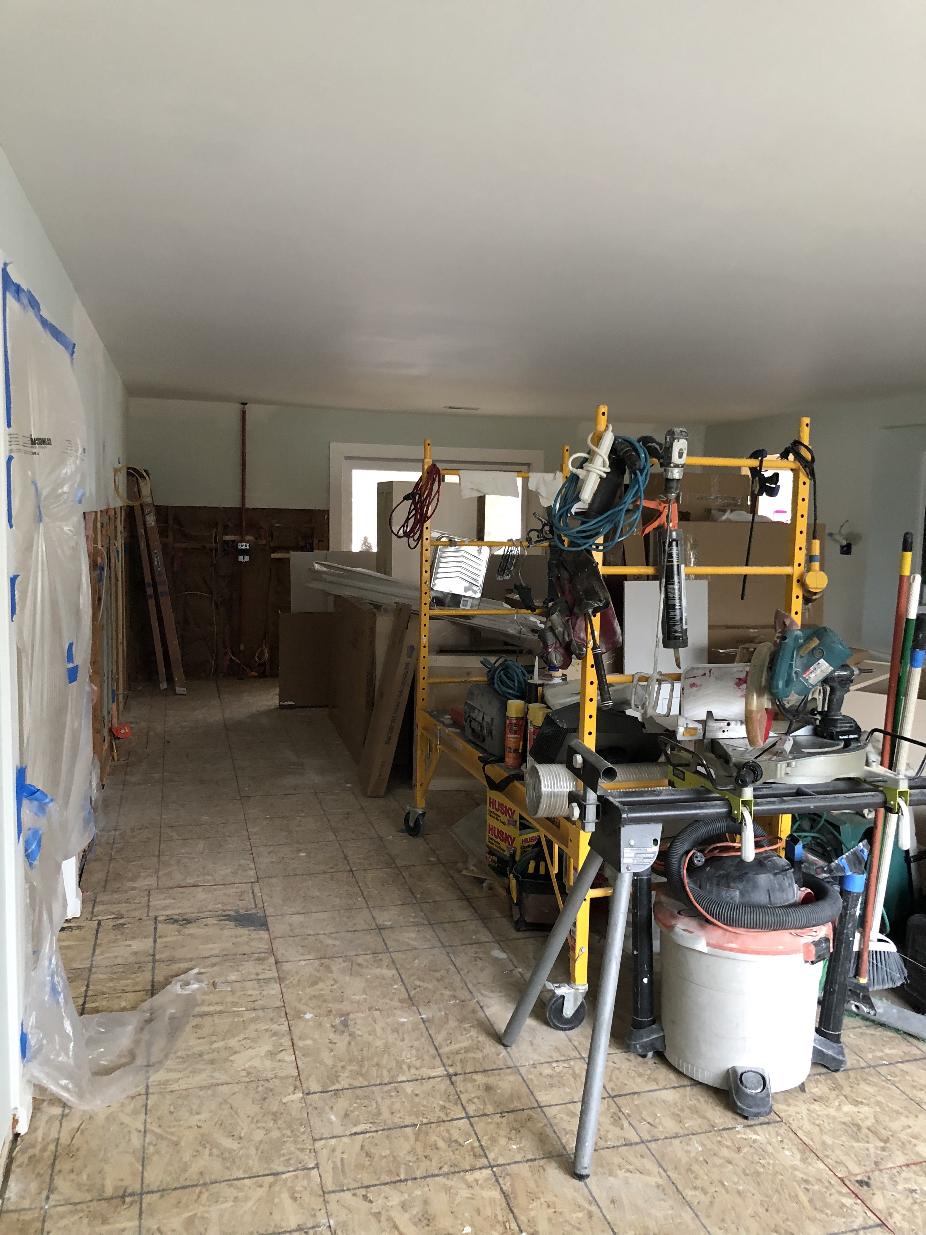 Here we are one week down and things are going very well. I tried to stay at our house in Delaware where the beautiful views of the water soothe the most anxious. However, with decisions to be made, I headed back to Maryland. I was also happy to get back to where all the work was going on. It gives me comfort to know that I could see the progress as it went along and also I would be accessible to the contractors when decisions needed to be made. Of course, Tim and I make changes, not daily but there have been a few. We added a few recessed lights, an outlet or two (never can have too many). So what actually took place during that first week…